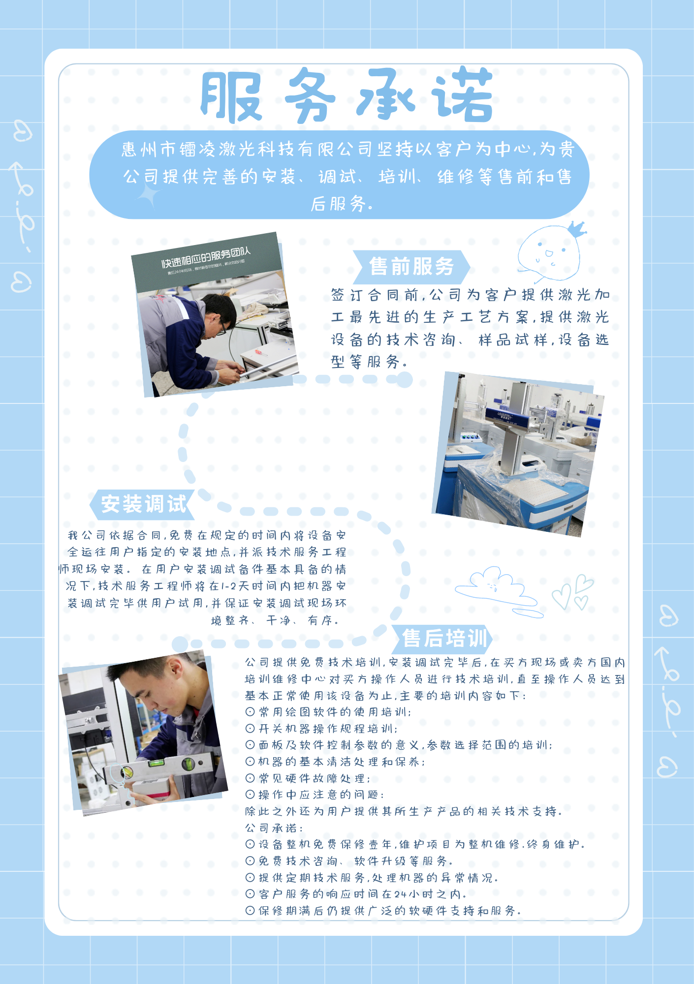 我們有專業(yè)的定制開發(fā)團(tuán)隊(duì),可以根據(jù)實(shí)際的需求來(lái)量身訂造的激光應(yīng)用解決方案。從方案指定,確定方案,訂單生產(chǎn)及現(xiàn)場(chǎng)安裝,全程貼心服務(wù)。如果有需要,請(qǐng)撥打400-0752-499電話,我們將盡快安排專業(yè)的人員聯(lián)系您。