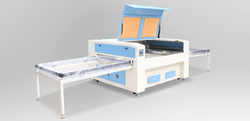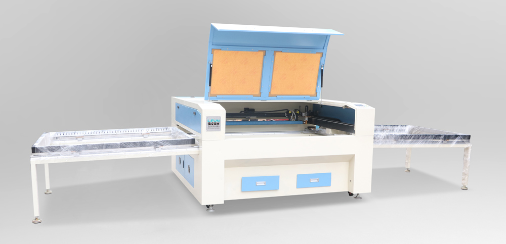 針對布料卷材設計的全自動激光切割機,采用二氧化碳激光切割